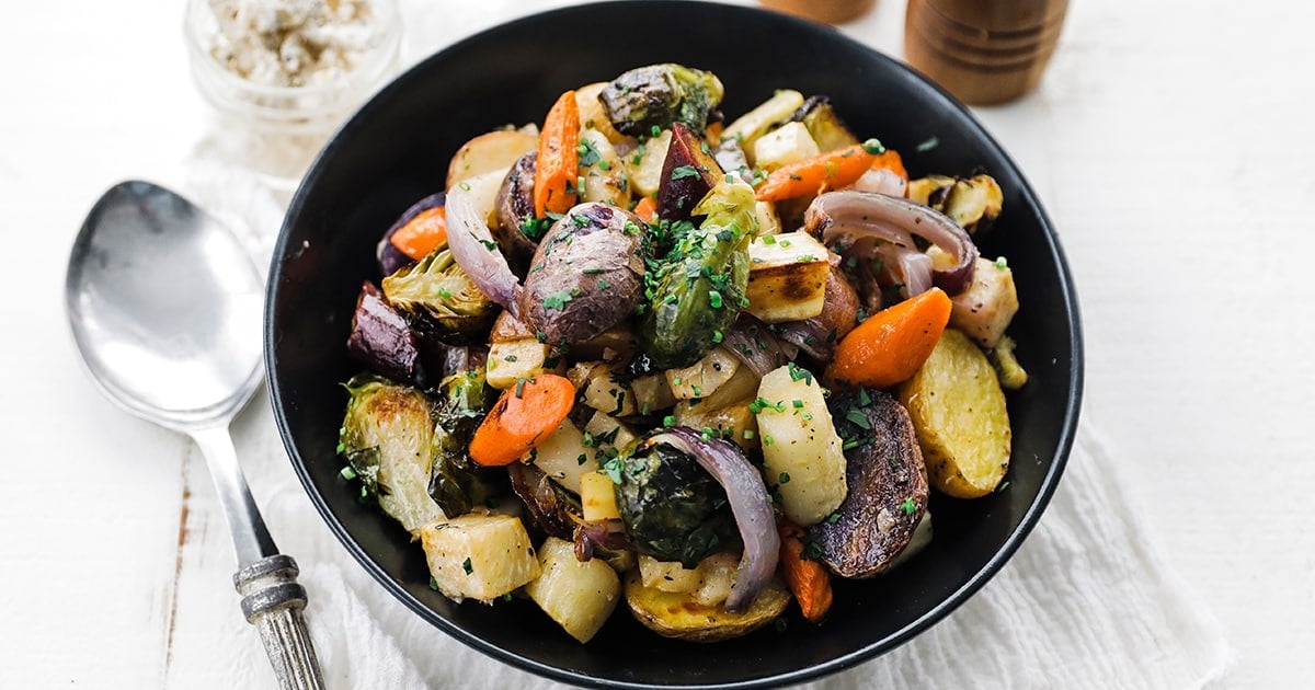 Balsamic OvenRoasted Root Vegetables Roasted root vegetables, Oven Root Vegetable Oven These oven roasted root vegetables are a delicious side dish! A heaping pile of your favorite root vegetables. A simple formula for roasting any mix of root vegetables — be it carrots, parsnips, sweet potatoes, beets, turnips, or rutabagas. A few sprigs of fresh herbs for good measure. I top the tender, caramelized veggies with a fragrant sage oil. Roasted. Root Vegetable Oven.